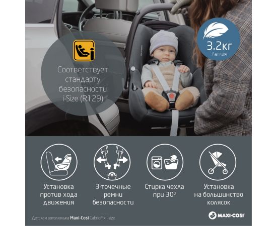 CabrioFix i-Size - это идеальное автокресло для начала путешествия вашего ребенка. CabrioFix i-Size соответствует самым высоким стандартам безопасности, сертифицирована по новому стандарту i-Size! CabrioFix i-Size устанавливается на базу и снимается с базы в один клик.