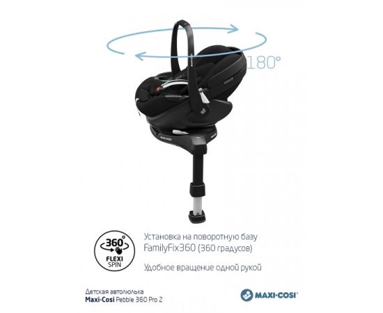 В сочетании с базой FamilyFix 360 Pro пристегивание ребенка становится простым и безопасным благодаря повороту на 360°, поскольку он смотрит прямо на вас.