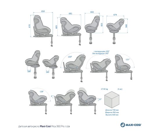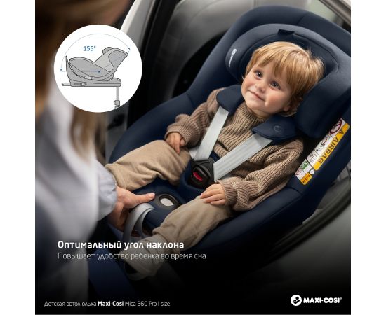 Maxi-Cosi Mica 360 Pro предлагает лучший в своем классе комфорт для детей от 0 до 4 лет благодаря технологии SlideTech® от Maxi-Cosi, вращению FlexiSpin, 5 удобным положениям наклона и ремням безопасности Easy-in. Разработанное в соответствии с высочайшими стандартами безопасности i-Size, интегрированное основание сиденья оснащено технологией скольжения, поэтому вам будет легче сажать и высаживать ребенка из машины. Просто сдвиньте и поверните.