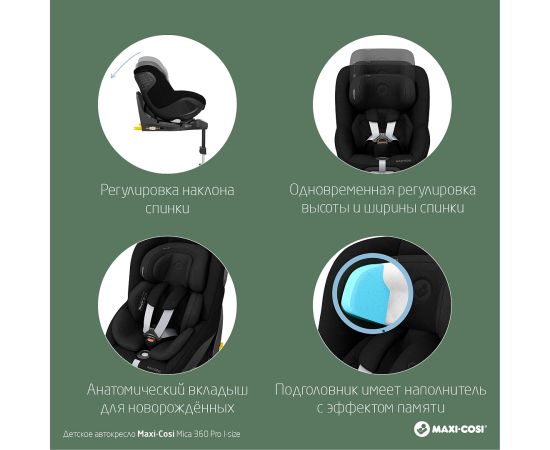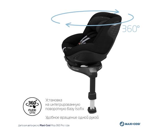 - Благодаря инновационной технологии SlideTech® и вращению на 360° одной рукой автокресло Mica 360 Pro делает посадку и высадку ребенка из автомобиля еще более легкой