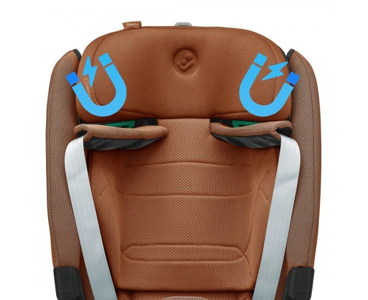 - 5-ти точечные ремни безопасности оснащены магнитами в подплечниках для легкой посадки ребенка в кресло