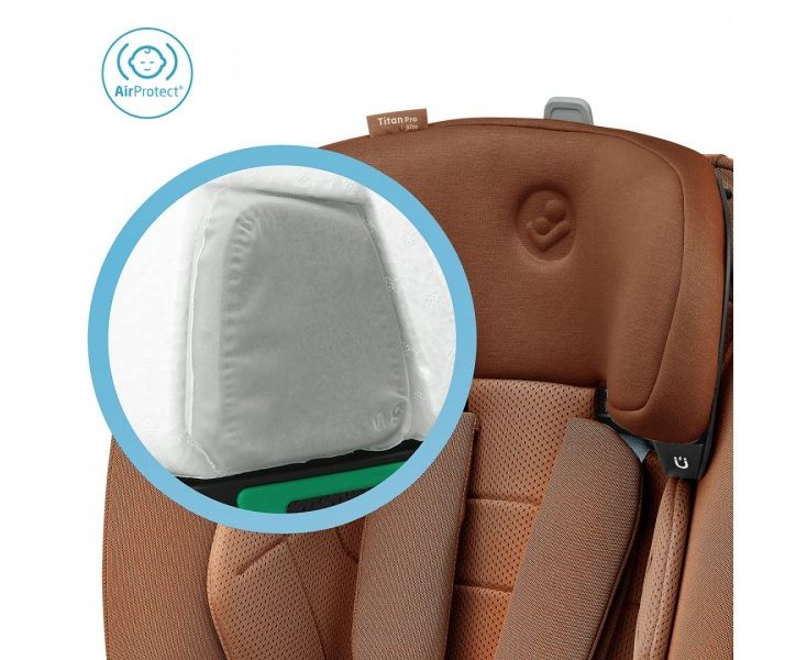 Это автокресло отвечает наивысшему стандарту безопасности i-Size. Поскольку 45% ударов приходится на боковые стороны, Titan Pro i-Size оснащен запатентованными подушками безопасности AirProtect® в подголовнике, которые снижают риск травм головы до 20% и повышают комфорт для вашего ребенка.