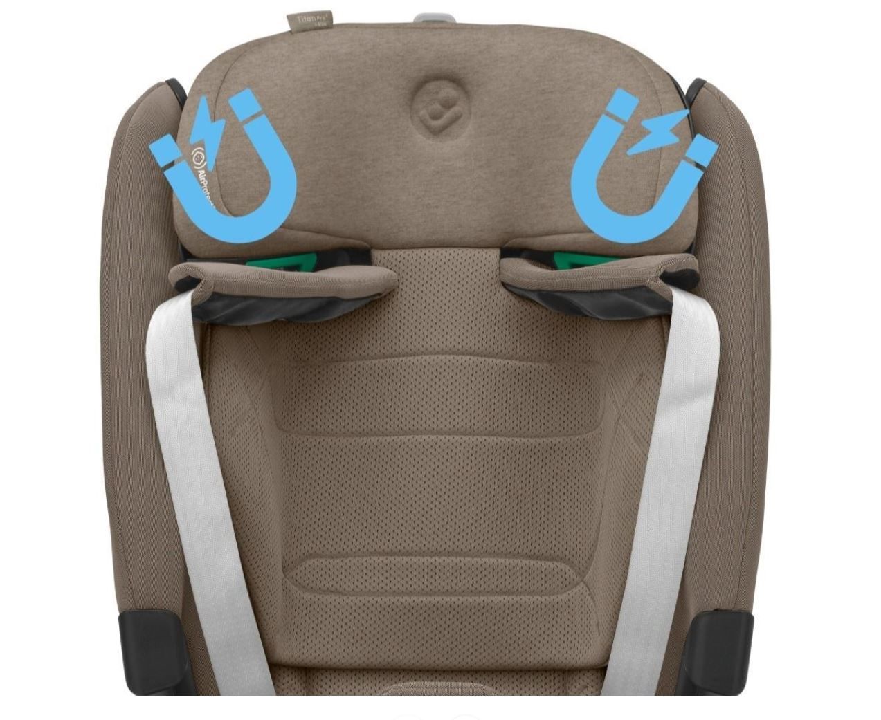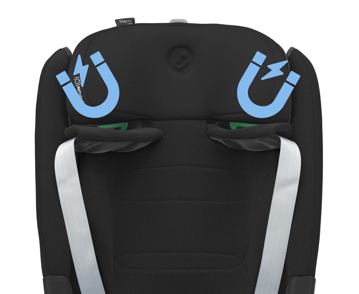 Автокресло Titan Pro i-Size растет вместе с вашим ребенком от 15 месяцев до 12 лет, от детского сада до школьной скамьи. Когда они совсем маленькие, вы можете использовать магнитные ремни easy-in, чтобы обеспечить их безопасность (5-точечные ремни можно использовать до 4 лет или 105 см). Как только ваш ребенок станет достаточно взрослым, чтобы пристегиваться ремнем безопасности автомобиля, 5-точечные ремни можно снять. Мягкий подголовник имеет 15 положений по выстое в то время как сиденье трансформируется в сиденье-бустер с высокой спинкой, чтобы обеспечить вашему малышу безопасность, надежность и комфорт во время путешествий.