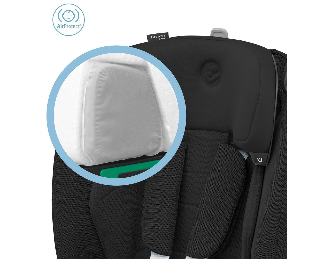 Titan Pro i-Size — лучший защитник. Это автокресло отвечает наивысшему стандарту безопасности i-Size. Поскольку 45 % ударов приходится на боковые стороны, Titan Pro i-Size оснащен запатентованными подушками безопасности AirProtect® в подголовнике, которые снижают риск травм головы до 20 % и повышают комфорт для вашего ребенка. Это универсальное автокресло оснащено защитой от бокового удара благодаря запатентованной технологии G-Cell 2.0; Гибкий, но прочный материал предназначен для распределения силы удара от вашего ребенка, чтобы уменьшить травму.