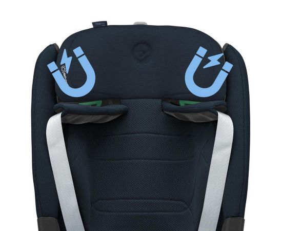 5-ти точечные ремни безопасности оснащены магнитами в подплечниках для легкой посадки ребенка в кресло