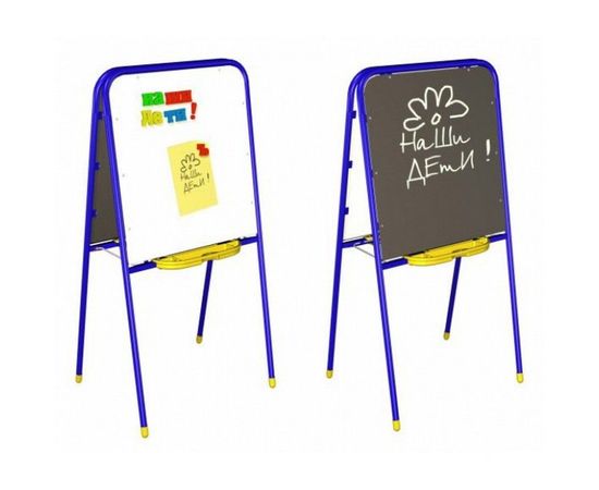 В его комплект входят доска для рисования маркером или мелом, вместительный пластиковый пенал для мела и маркеров, магнитный набор из русской азбуки, цифр, знаков препинания.