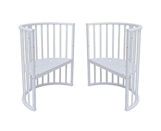 Форма кроватки способствует более быстрому развитию ребёнка, так как в ней открывается обзор на 360 градусов. По мере того, как растёт малыш, вместе с ним растёт и кроватка!