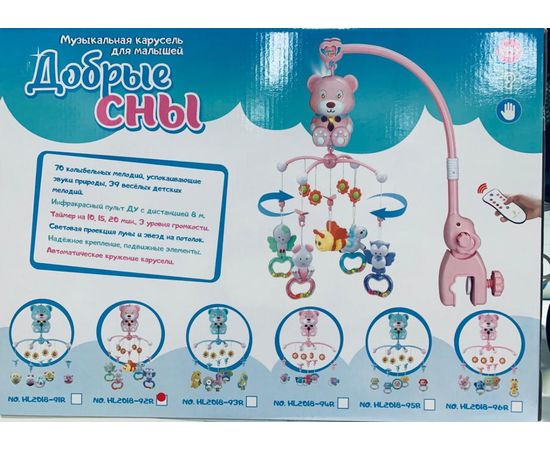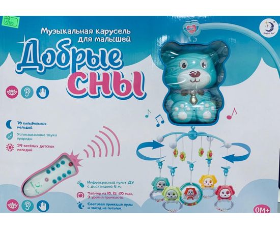 Музыкальный мобиль Добрые сны с пультом создан специально для развития малыша с первых дней его рождения. Он создаст ощущение сказки, которая убаюкает кроху перед сном.