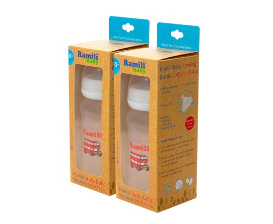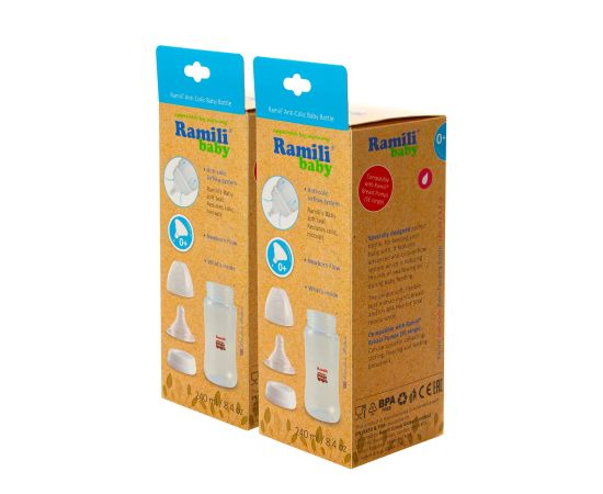 Набор из двух противоколиковых бутылочек Ramili Baby (240 мл. x2, 0+, слабый поток).