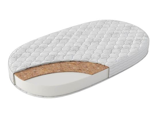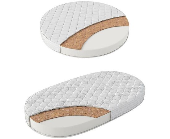 Набор матрасов в овальную кровать-трансформер Эстель, Паулина - круглый и овальный из ортофайбера. Круглый матрас используется только в люльке, для малышей до 6 месяцев. В этом возрасте малышу рекомендуют спать только на твердой поверхности, поэтому матрас с кокосом с одной стороны подойдет лучше всего. Однако, своим небольшим весом, малыш не сможет продавить матрас без кокоса с основой высокой плотности, как у нас, поэтому и такой вариант тоже подходит. Мы же рекомендуем именно матрас с кокосом с одной стороны. После вы используете овальный матрас до 6 лет.