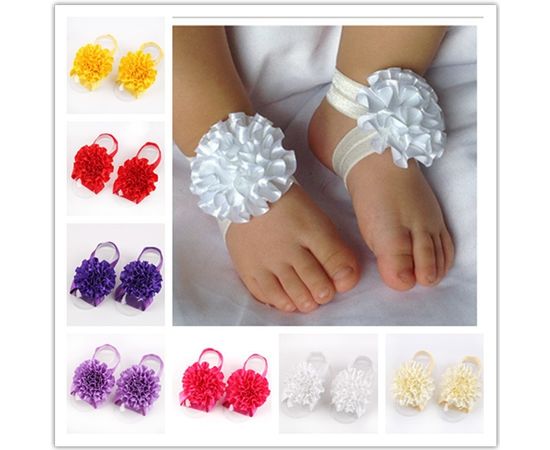 Набор резиночек на ножки для новорожденной, в комплекте две штучки, на каждую ножку. Атласный красивый цветочек украсит любой наряд, когда малышке еще не нужна обувь. Цвет: сиреневый (2шт), белый (3шт), розовый (1).