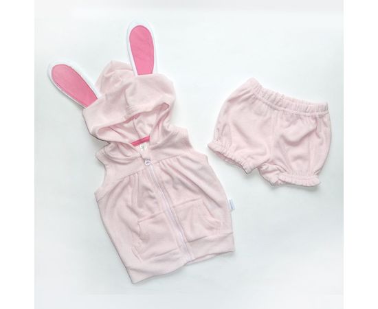 Набор зайчика 2в1 шортики+кофточка арт2737 - в комплекте сразу две вещички - отлично на лето и для подарка! Материал - тонкая махра. Шортики-фонарики и безрукавка с капюшоном с ушками - смотрятся очень прикольно и весело! 100% хлопок.