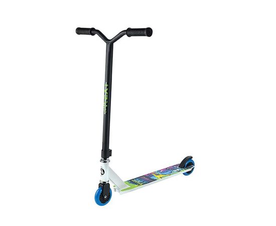 Описание Самокат трюковый; Размер в собранном виде (ДхШхВ): 68x50x84 см; Материал: 100% сталь; Колеса: 100 мм полиуриетан Подшипники: ABEC-7; Платформа: антискользящее покрытие, размер (ДхШ) - 44x9,7 см; Ножной тормоз: есть; Грузоподъемность: до 100 кг.