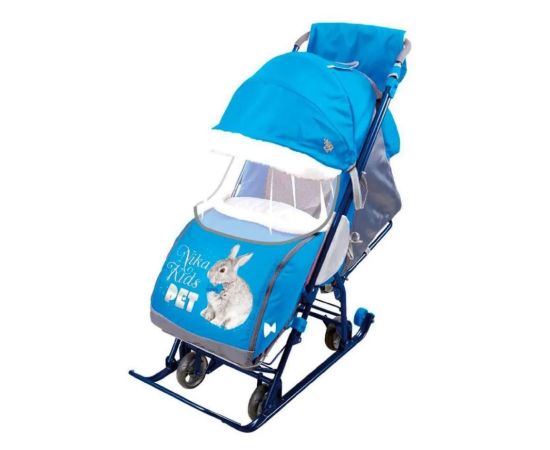 НИКА Cанки-коляска НАШИ ДЕТКИ 4-1 с кроликом васильковый