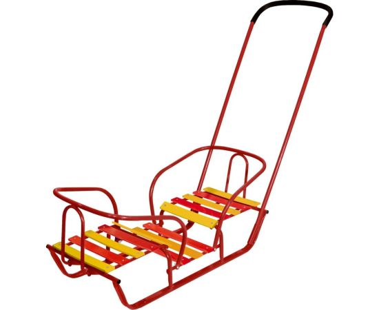 Санки-двойняшки Ника "СД" - практичные, удобные, яркие. Имеют плоские полозья, ручку, которая регулируется в двух положениях. подножку, трос-веревку, два удобных посадочных места со спинками. Рейки для сидения расположены поперек санок. Съемная ручка-толкатель. Подножка для ног между двумя сиденьями.
