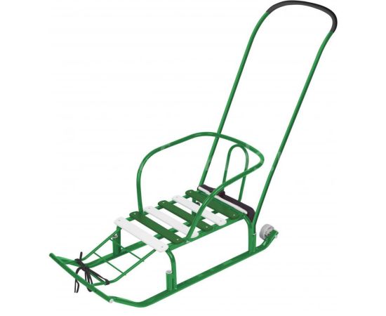 Материал: каркас – металл; сидение – рейки; ремень безопасности – ременная лента; колеса – морозостойкая пластмасса