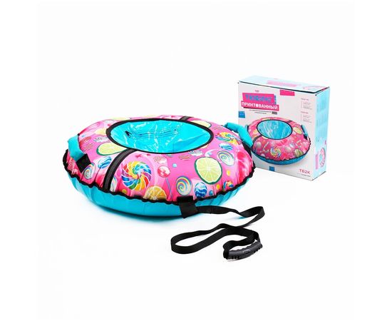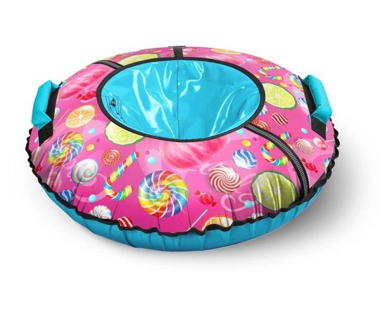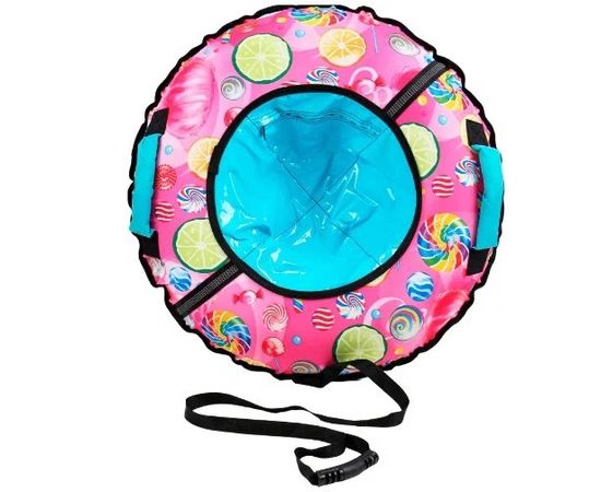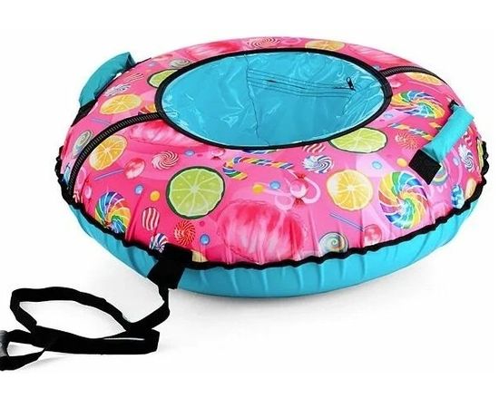 Красочный тюбинг из принтованной ткани подарит незабываемые впечатления от зимней прогулки. Водонепроницаемая ткань из которой изготовлена верхняя часть изделия, создаст дополнительное сопротивление и не позволит выскользнуть из тюбинга. А благодаря высококачественной тентовой ПВХ ткани с глянцевой поверхностью, из которой исполнено дно этой модели достигается идеальное скольжение. Усиленная камера входит в комплекте.