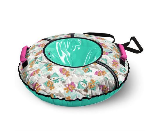 Красочный тюбинг из принтованной ткани подарит незабываемые впечатления от зимней прогулки. Водонепроницаемая ткань из которой изготовлена верхняя часть изделия, создаст дополнительное сопротивление и не позволит выскользнуть из тюбинга. А благодаря высококачественной тентовой ПВХ ткани с глянцевой поверхностью, из которой исполнено дно этой модели достигается идеальное скольжение. Усиленная камера входит в комплекте.