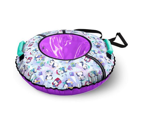 Красочный тюбинг из принтованной ткани подарит незабываемые впечатления от зимней прогулки. Водонепроницаемая ткань из которой изготовлена верхняя часть изделия, создаст дополнительное сопротивление и не позволит выскользнуть из тюбинга. А благодаря высококачественной тентовой ПВХ ткани с глянцевой поверхностью, из которой исполнено дно этой модели достигается идеальное скольжение. Усиленная камера входит в комплекте.
