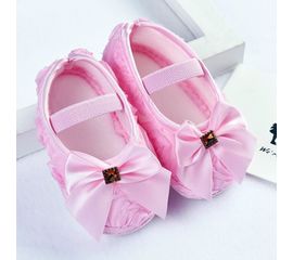 Пинетки розовые с атласным бантиком на резинке. Нежные, нарядные, на резиночке. Не предназначены для деток, которые уже ходят. Отлично для прогулки, да и просто похода в гости! 100% хлопок