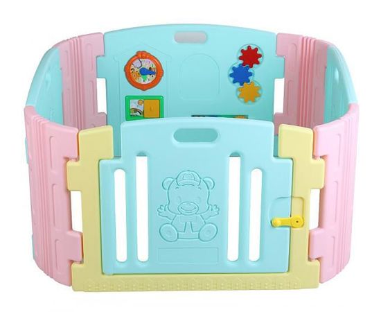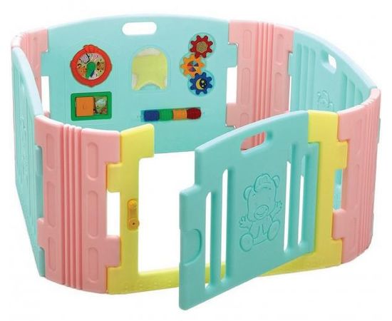 Ограждение-манеж для детей EDU PLAY с игровой панелью арт BR-7317PCT бирюза/лимон/розовый