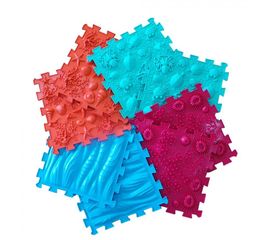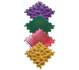 Комплект Микс 1 рекомендован для детей до 5 лет. В комплекте 4 цвета: 2 коврика Шишки (твердые) 2 коврика Шишки (мягкие) 2 коврика Шипы 2 коврика Трава Общая площадь собранного покрытия 0,5 кв.м. Назначение: Профилактика плоскостопия. Массаж ног и снятие...