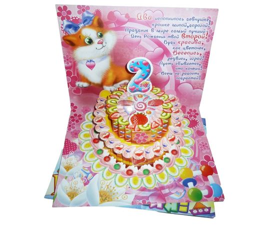 Открытки большие, 3D - yа день рождения малыша, с указанием возраста - 1, 2 годика!