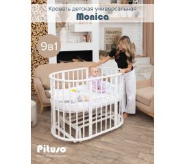 Детская кроватка Pituso Monica 9 в 1, с маятниковым механизмом. Кроватка выполнена из фанеры березы и МДФ. Закругленные края деталей не позволят Вашему малышу удариться. В первые месяцы жизни в круглой кроватке малыш чувствует себя очень комфортно! Девять вариантов...