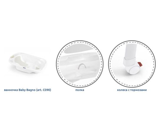 - ванночка широкая анатомическая, может использоваться в 2-х позициях (для малышей от 0 до 6 месяцев и от 6 до 12),