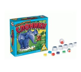 «Разноцветные слоники» - это веселое развлечение на тренировку памяти, предназначенная для самых маленьких любителей настольных игр. Играть в нее могут дети, начиная с 4 лет. В коробке вы найдете: 42 слоников (по 7 каждого цвета), 22 колпачка, наклейки (ими необходимо украсить...