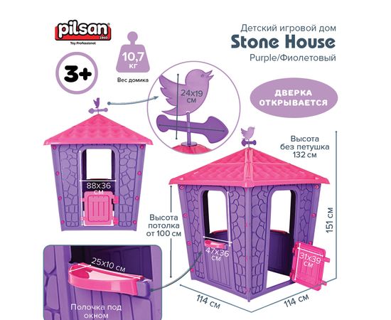 PILSAN Детский игровой дом Stone House Purple/Фиолетовый,114*114*151 см