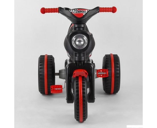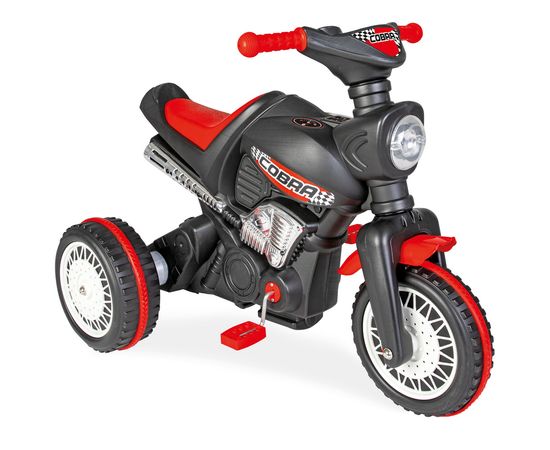 Детский педальный мотоцикл Cobra может похвастаться плавными линиями и реалистичным дизайном настоящего спортивного транспортного средства.