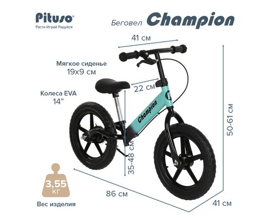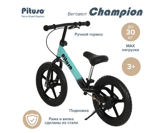 PITUSO Беговел Champion, Black-blue/Черно-голубой, колеса EVA 14", тормоз, подножка