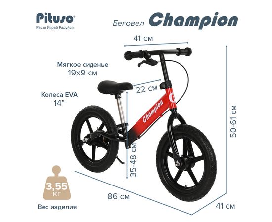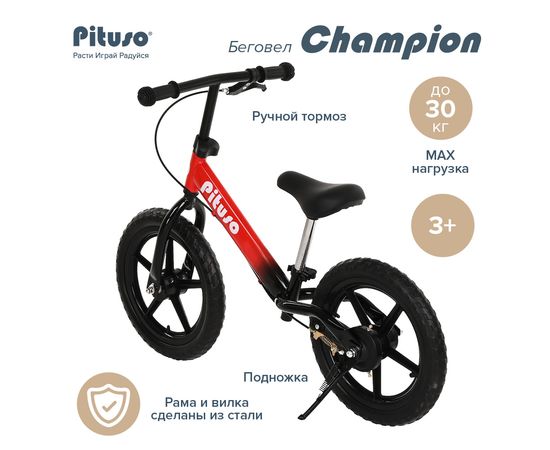 PITUSO Беговел Champion, Black-red/Красно-черный, колеса EVA 14", тормоз, подножка