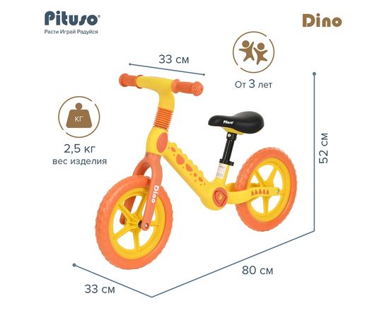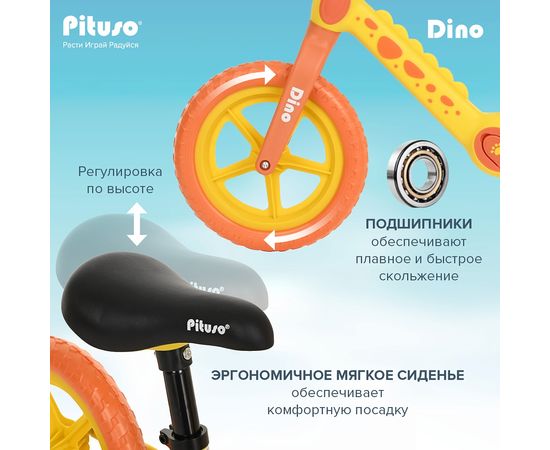 PITUSO Беговел Dino, Yellow/Желтый, колеса EVA 12"
