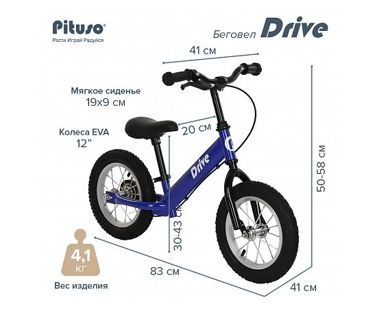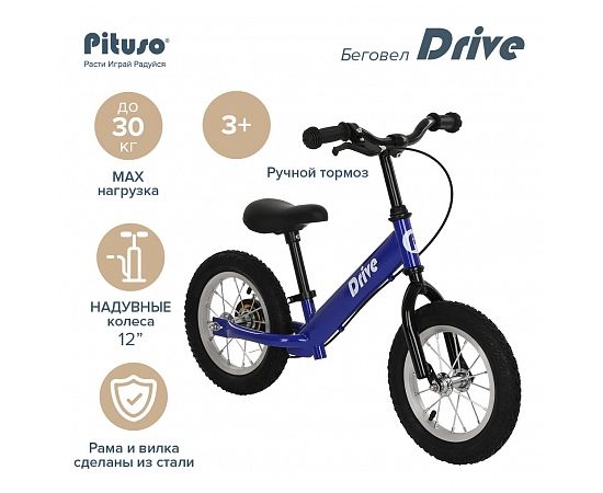 PITUSO Беговел Drive, Blue/Синий, колеса AIR 12", тормоз