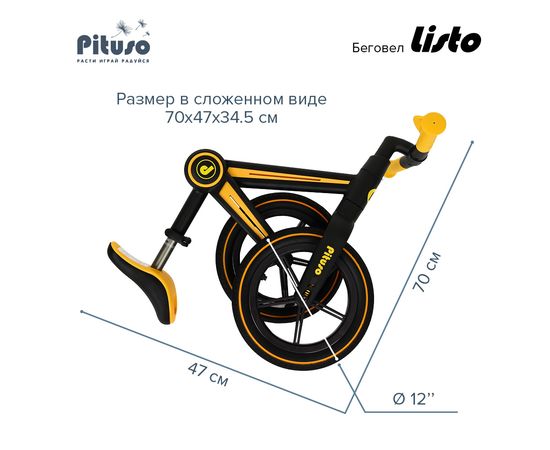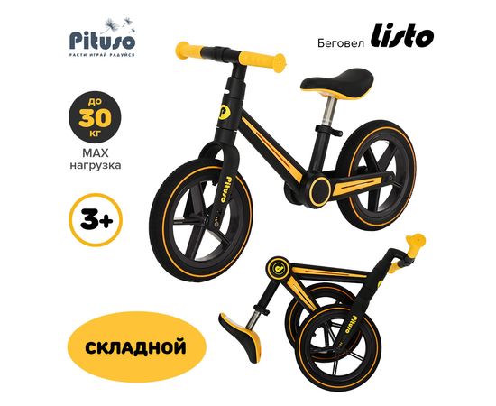 PITUSO Беговел Listo, Yellow/Желтый, колеса EVA 12", складная рама