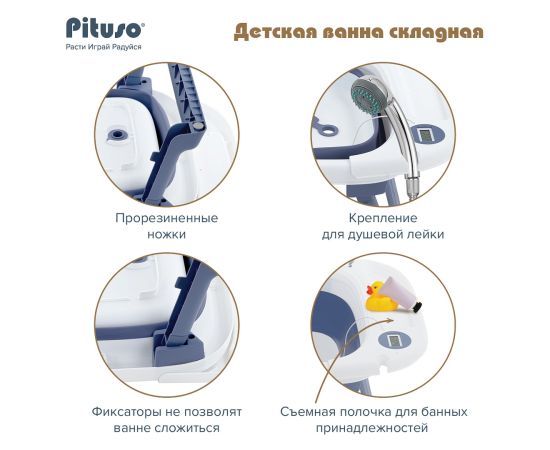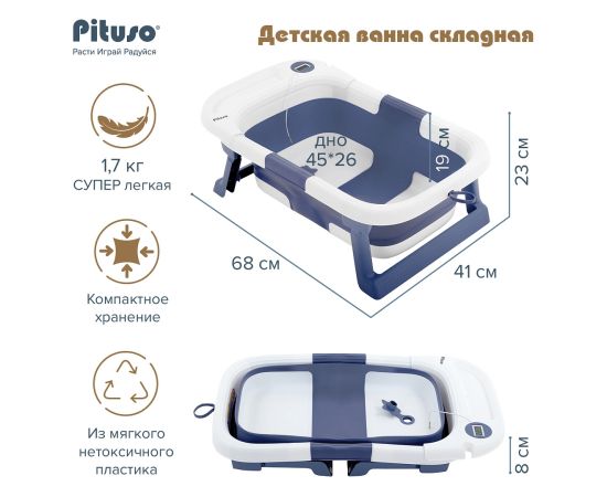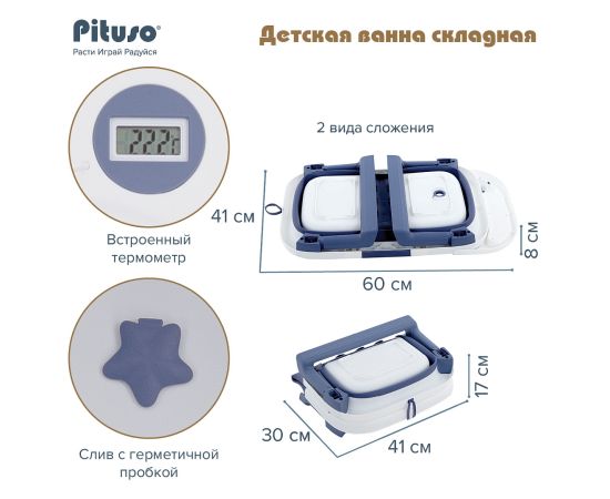 PITUSO Детская ванна складная(двойное сложение),встроен.термометр Blue/Синий,68*41*23 см