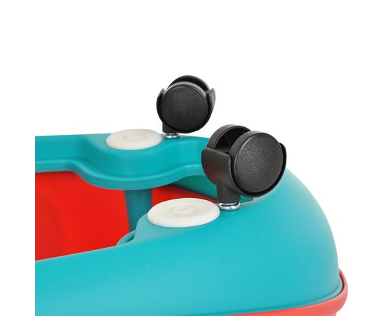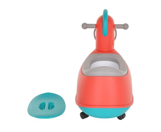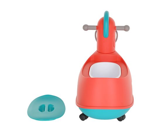 Детский горшок эргономичной формы на колесиках со съемной внутренней частью и с крышкой.