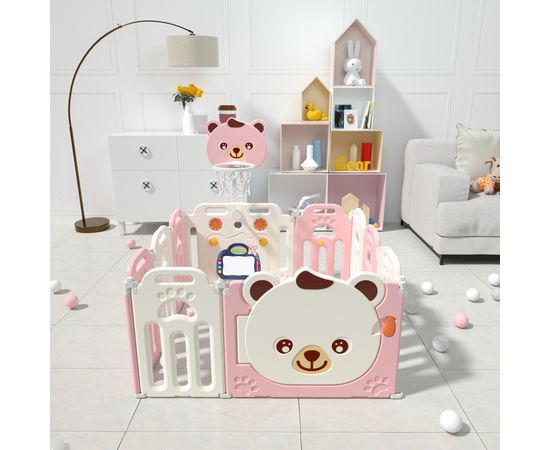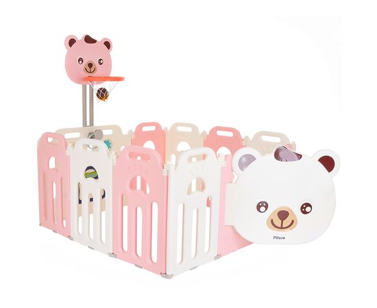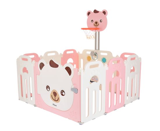 PITUSO Детский ограждение-манеж Мишка,Розовый/белый, с баскет.стойкой (без шаров)