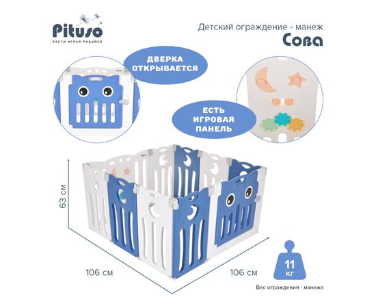 PITUSO Детский ограждение-манеж Сова, Синий/белый(без шаров)