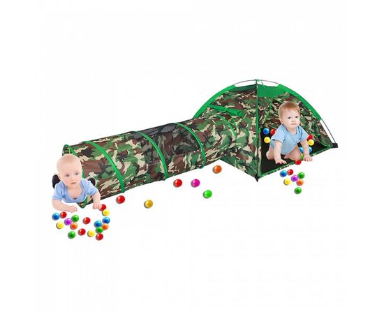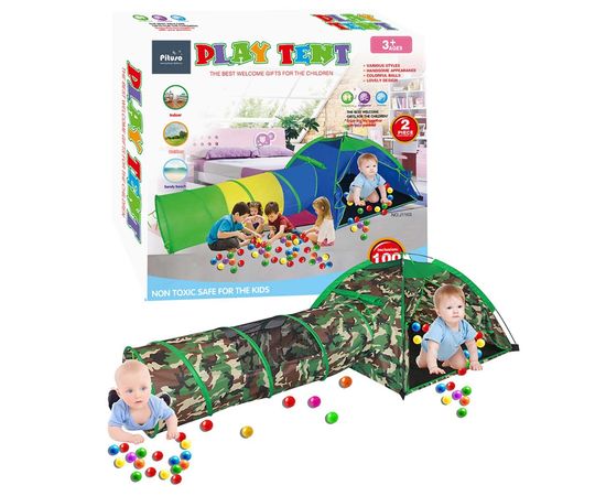 В комплекте с палаткой туннель и 100 разноцветных шаров (диаметр 6 см) Игровая палатка для детей от 3-х лет (дети до 3-х лет играют строго под присмотром взрослых!).