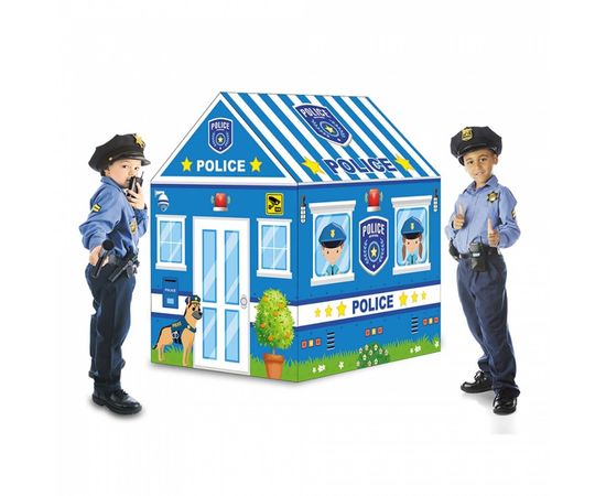 Дизайн палатки очень необычный и выполнен в виде полицейского участка. Такая раскраска поможет при сюжетно-ролевых играх и надолго увлечет ребенка.