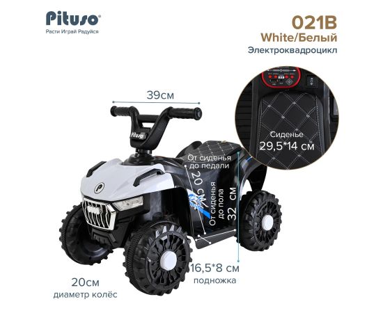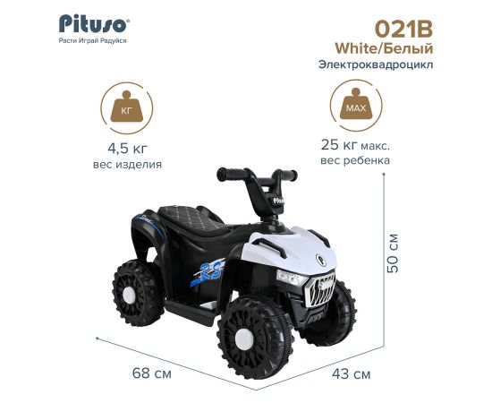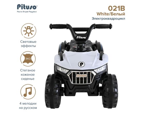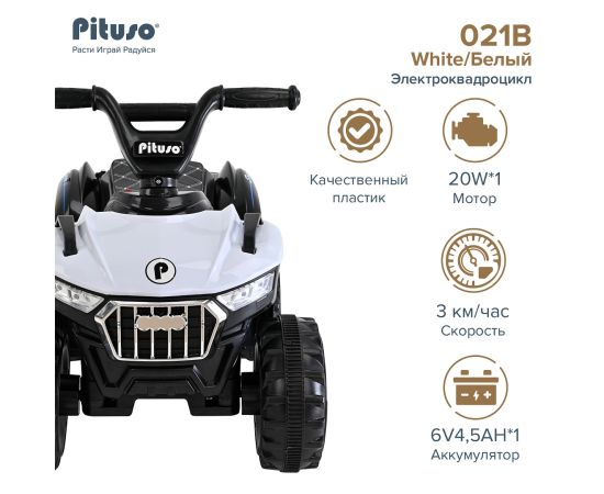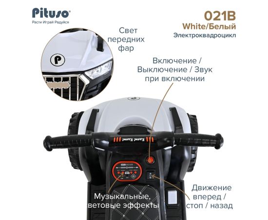 PITUSO Электроквадроцикл 021B 6V/4,5Ah,20W*1,колеса пласт,свет,муз,68*43*50см,White/Белый