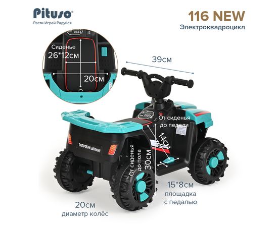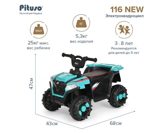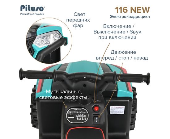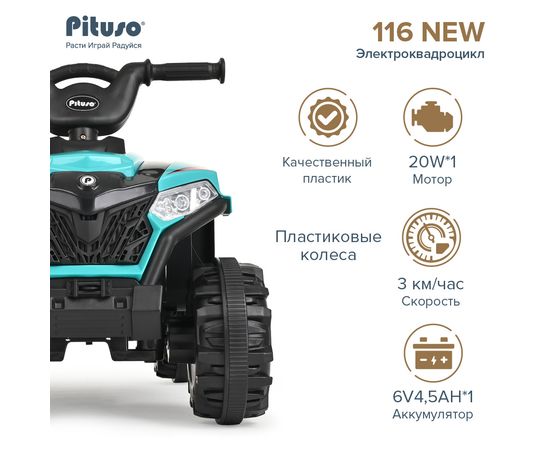 PITUSO Электроквадроцикл, 116-NEW 6V/4.5Ah,20W*1,колеса пласт,свет,муз,68*43*47,Green/Бирюзовый