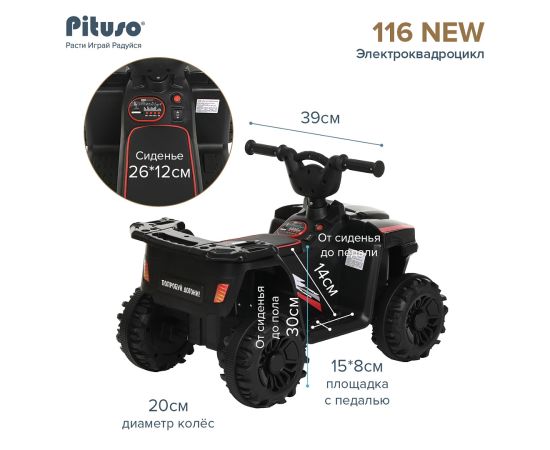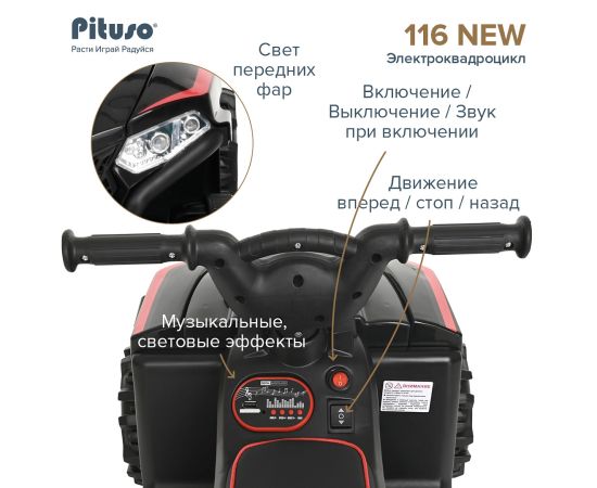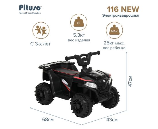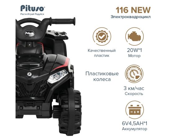 PITUSO Электроквадроцикл, 116-NEW 6V/4.5Ah,20W*1,колеса пласт,свет,муз,68*43*47см, Black/Черный