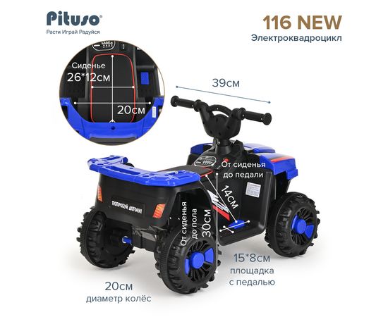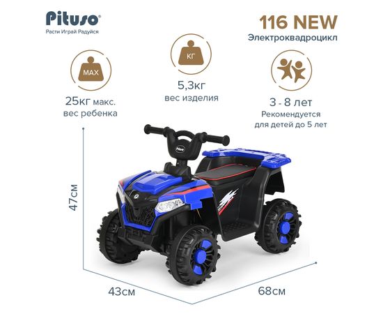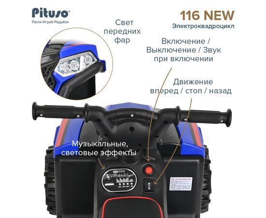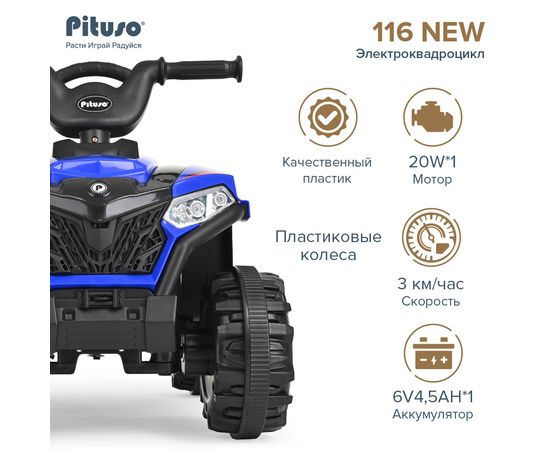PITUSO Электроквадроцикл, 116-NEW 6V/4.5Ah,20W*1,колеса пласт,свет,муз,68*43*47см, Blue/Синий