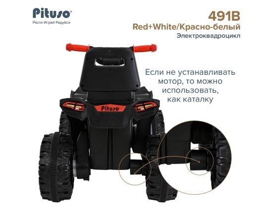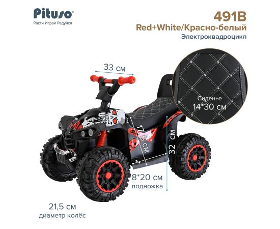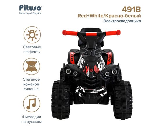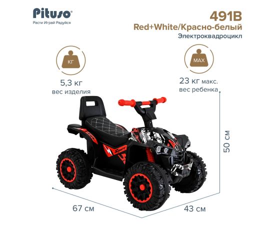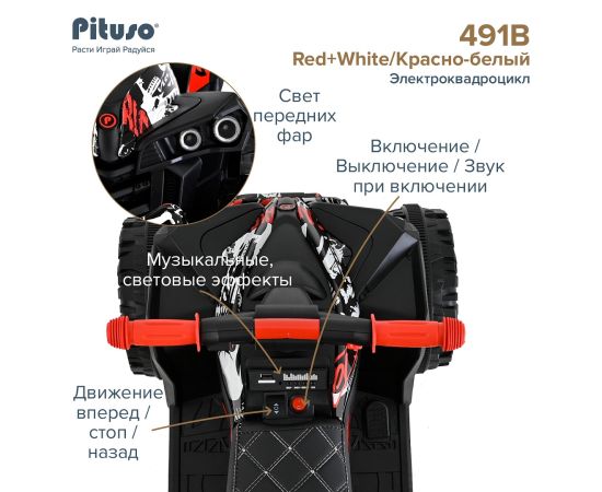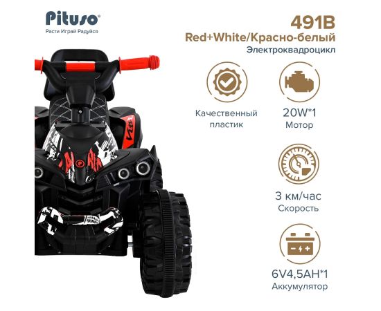 PITUSO Электроквадроцикл 491B 6V/4,5Ah,20W*1,колеса пласт,свет,муз,67*43*50см,Red+White/Красно-белый