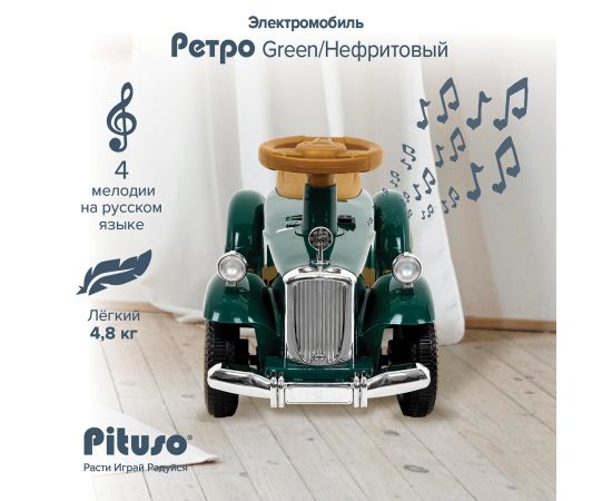 PITUSO Электроквадроцикл Ретро 6V/4.5Ah,20W*1,колеса пласт,свет,муз,82*34*40см,Green/Нефритовый
