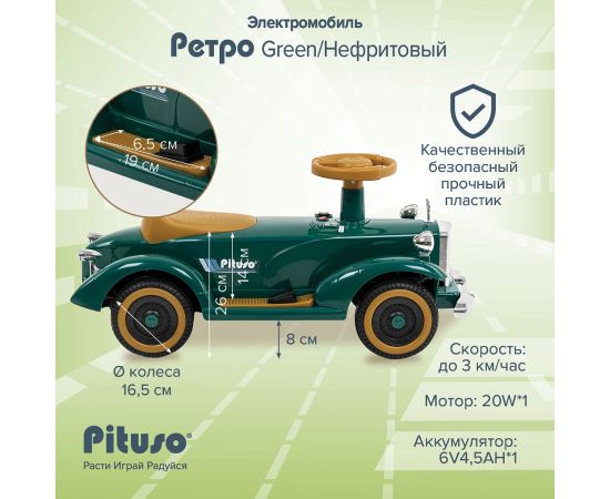 Детский электромобиль Ретро тм PITUSO имеет необычный ретро дизайн.